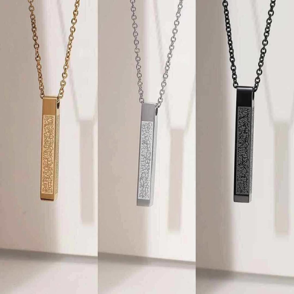 Hamare Ayat-ul-Kursi Necklaces bohat hi khoobsurati se design kiye gaye hain, jahan modern style aur Islamic touch ka perfect combination milta hai. Ye necklace daily wear ke liye bhi munasib hai aur special occasions par bhi aapke look ko classy bana deta hai.